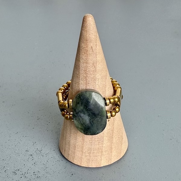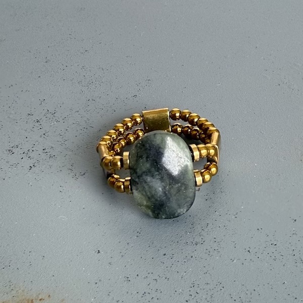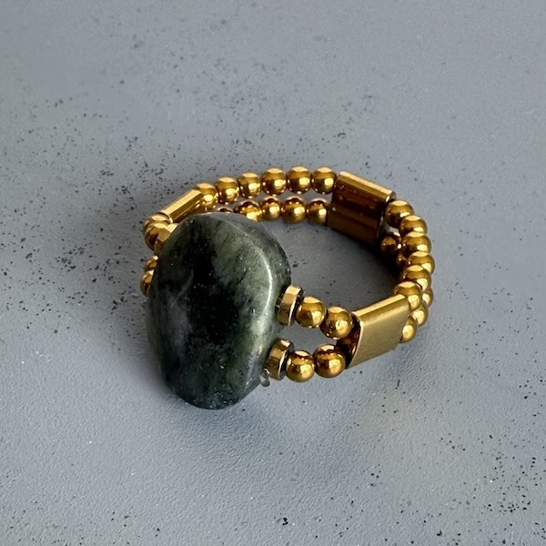 Bague double en jaspe vert et hématite dorée