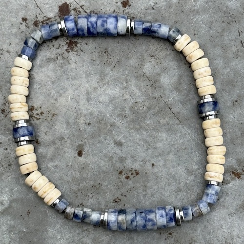 Bracelet Dakota en Jaspe Blue Spot, Howlite Blanche et Hématite Argentée – Histoire, Propriétés et Équilibre Énergétique