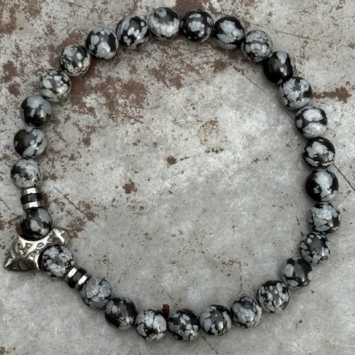 Bracelet Dakota en Obsidienne Flocon de Neige et Pointe de Flèche en Acier Chirurgical – Élégance et Protection Moderne