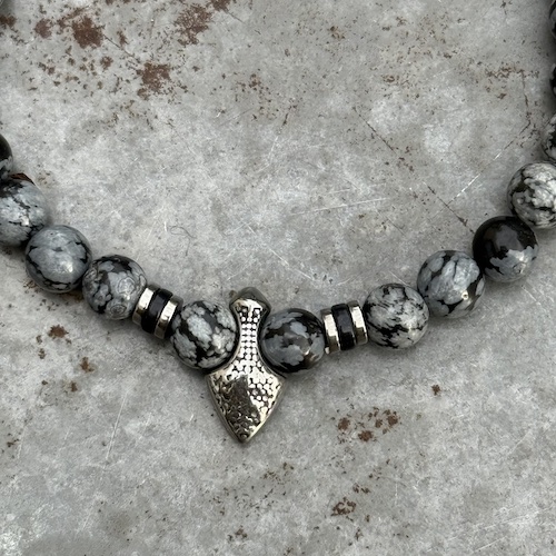 Le bracelet Dakota peut être porté seul pour un look minimaliste et raffiné ou en combinaison avec d’autres bracelets pour un style plus affirmé et audacieux. Les pierres naturelles comme l’obsidienne flocon de neige se marient aisément avec d’autres matériaux et couleurs, vous permettant de créer des ensembles uniques qui reflètent votre personnalité. Si vous avez besoin de conseils pour assortir vos bracelets, je suis à votre disposition pour vous envoyer des idées de compositions personnalisées.
