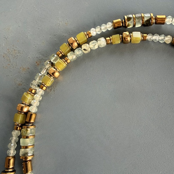 Chaque pièce est entièrement réalisée à la main dans mon atelier de Voiron, en Isère, avec des pierres naturelles soigneusement sélectionnées. Ce sautoir est une pièce unique, reflet d’un savoir-faire artisanal et d’une élégance intemporelle.